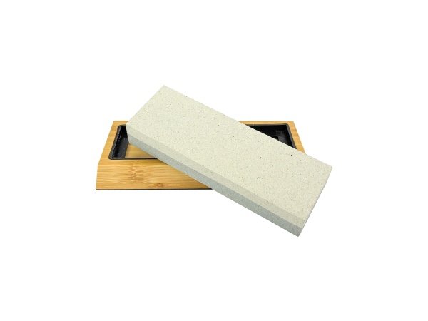 Sprehn carborundum slibesten har korn 120 på den ene side og korn 240 på den anden. Det giver et optimalt resultat ved slibning af stål, og den kan bruges ved alle typer stål (udover hårdmetal) både tørt og vådt. Slibestenen kommer med en bambusholder med gummiindsats, der giver et stabilt underlag, når du sliber.
