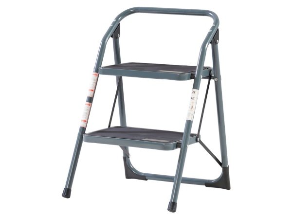 Køkkenstigen 2 trin eller taburetten er sammenklappelig og udført i 25 mm slagfast lakerede rør. Trinnene er belagt med sort skridsikkert vinyl.