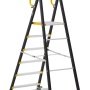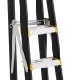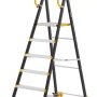 Trappestigen er udstyret med gelænder, der giver et sikkert arbejdsområde og har faldsikring på tre af siderne – og kan foldes for at lette transporten. Stigen er med en stor metalhylde, der giver dig masser af plads til værktøj og materialer, så du kan arbejde med hænderne fri.