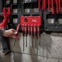 Milwaukee Packout™ krogrække er en stærk stålkrog til opbevaring af tungt værktøj og andre genstande. Værktøjskrogen er med låsemekanisme, der sikrer nem og sikker montering, mens belægning på krogen beskytter krog og de opbevarede genstande.
