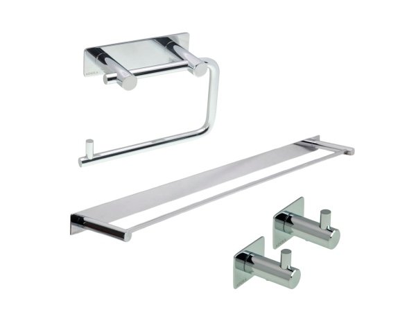 Dette ADORA® sæt i krom kombinerer stilrent design og praktisk funktionalitet til badeværelset. Sættet indeholder 1 stk. toiletpapirholder, 2 stk. håndklædekroge samt 1 stk. håndklædestang. Med et stilrent og klassisk design passer dette sæt til de fleste badeværelsestyper