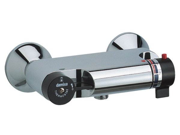Damixa TMC termostatbatteri 27450.00 i krom/sort til bruser er kendetegnet ved sit klassiske design med sorte greb. Brusearmaturet er udstyret med Damixas Eco-Klik, som er forudindstillet til at spare på vandet, og Anti-Skoldning skoldningsspærre, som er fabriksindstillet til at stå på 38 grader. Der er mulighed for at indstille både Eco-Klik- og Anti-Skoldningsfunktionerne. Termostatbatteriet er eksklusiv rosetter og forskruninger.