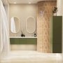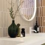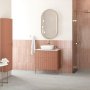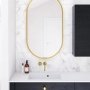 De bløde og afrundede former på det ovale Scanbad rammespejl giver et godt modspil til de ellers firkantede former, der findes i et badeværelse.