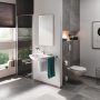 Det væghængte keramiske Grohe Bau WC er designet i en minimalistisk stil med renelinjer, der er fremstillet af alpinhvidt overfladebehandlet porcelæn, og den kantløse teknologi gør det umuligt for bakterier at skjule sig, hvilket gør rengøringen nem.