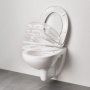 Derudover sikrer GROHE SoftClose, at låget og brættet bevæger sig langsomt og jævnt uden smækkende lyde og fingre, der kommer i klemme. Brættet indeholder et fikseringssæt i rustfrit stål.